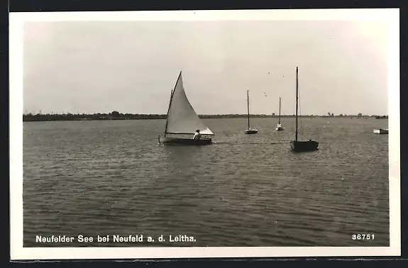 AK Neufeld a. d. Leitha, Neufeldersee mit Booten