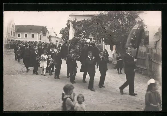 AK Neufelden /Mühlkreis, Begräbnisprozession im Ort
