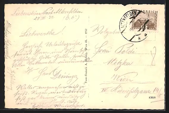 alte Ansichtskarte, gelaufen 1932, minimaler Einriss li. oben, guter Zustand