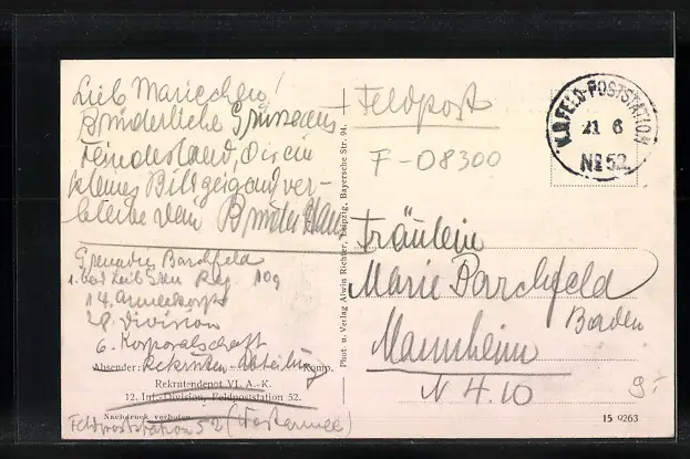 alte Ansichtskarte, gelaufen als Feldpost, guter Zustand
