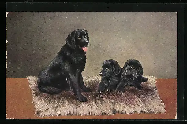 AK Neufundländer-Hündin mit zwei Welpen