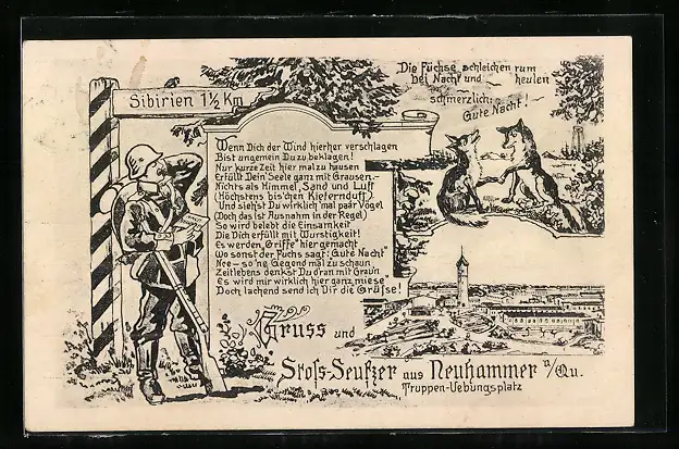 AK Neuhammer a. Queis, Soldat am Wegweiser Sibirien 1 1 /2 km, Truppenübungsplatz