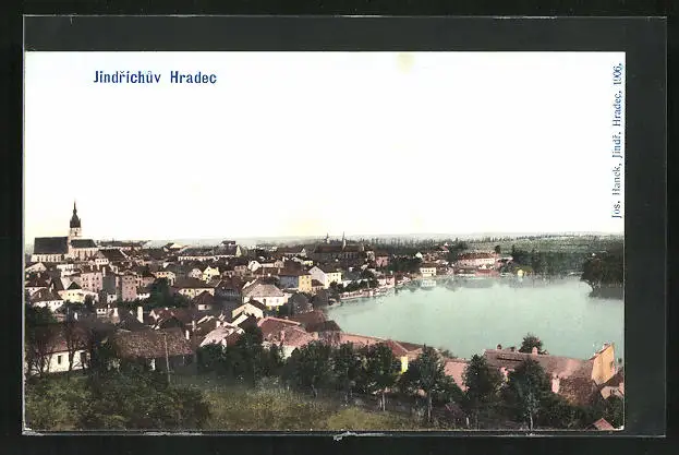 AK Neuhaus / Jindrichuv Hradec, Generalansicht der Stadt mit der Kirche