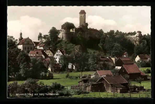 AK Neuhaus a. Peg., Ortsansicht mit der Burg Veldenstein