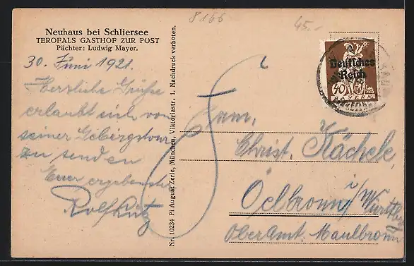 AK Neuhaus bei Schliersee, Terofals Gasthof zur Post, Pächter Ludwig Mayer