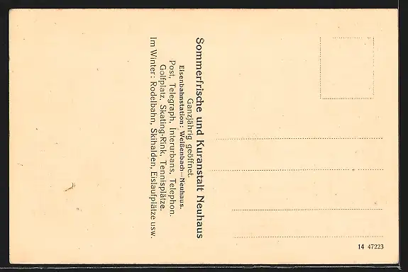 Personenbezogene Daten auf der Rückseite der Karte wurden durch blauen Textmarker unkenntlich gemacht. Die blauen Stellen sind auf die Vorderseite durchgeweicht und wirken sich negativ auf das Postkartenfoto aus