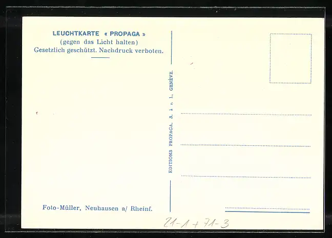 AK Neuhausen, Rheinfall, Leuchtkarte Propaga