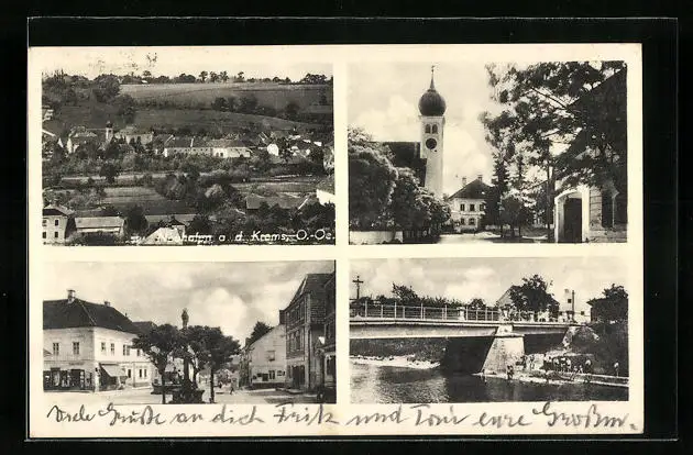 AK Neuhofen a. d. Krems, Ortsansicht, Kirche, Marktplatz, Badeufer