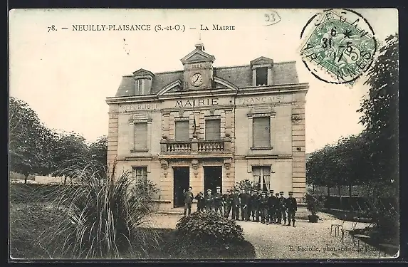AK Neuilly-Plaisance, La Mairie avec groupe de personnes devant le bâtiment