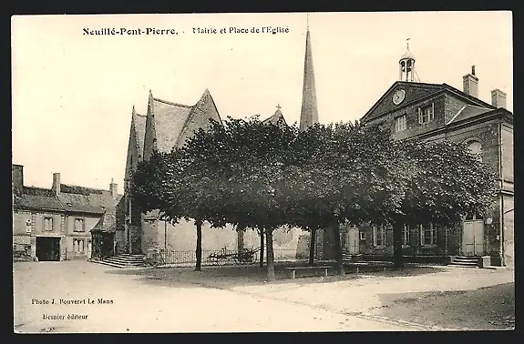 AK Neuilly-Pont-Pierre, Mairie et Place de l`Église