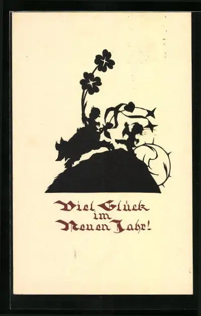 AK Neujahrsengel mit Schwein und Sonne