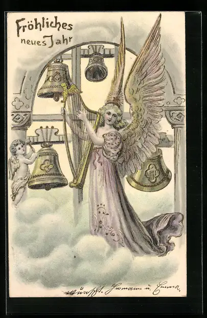 AK Neujahrsengel spielt auf der Harfe