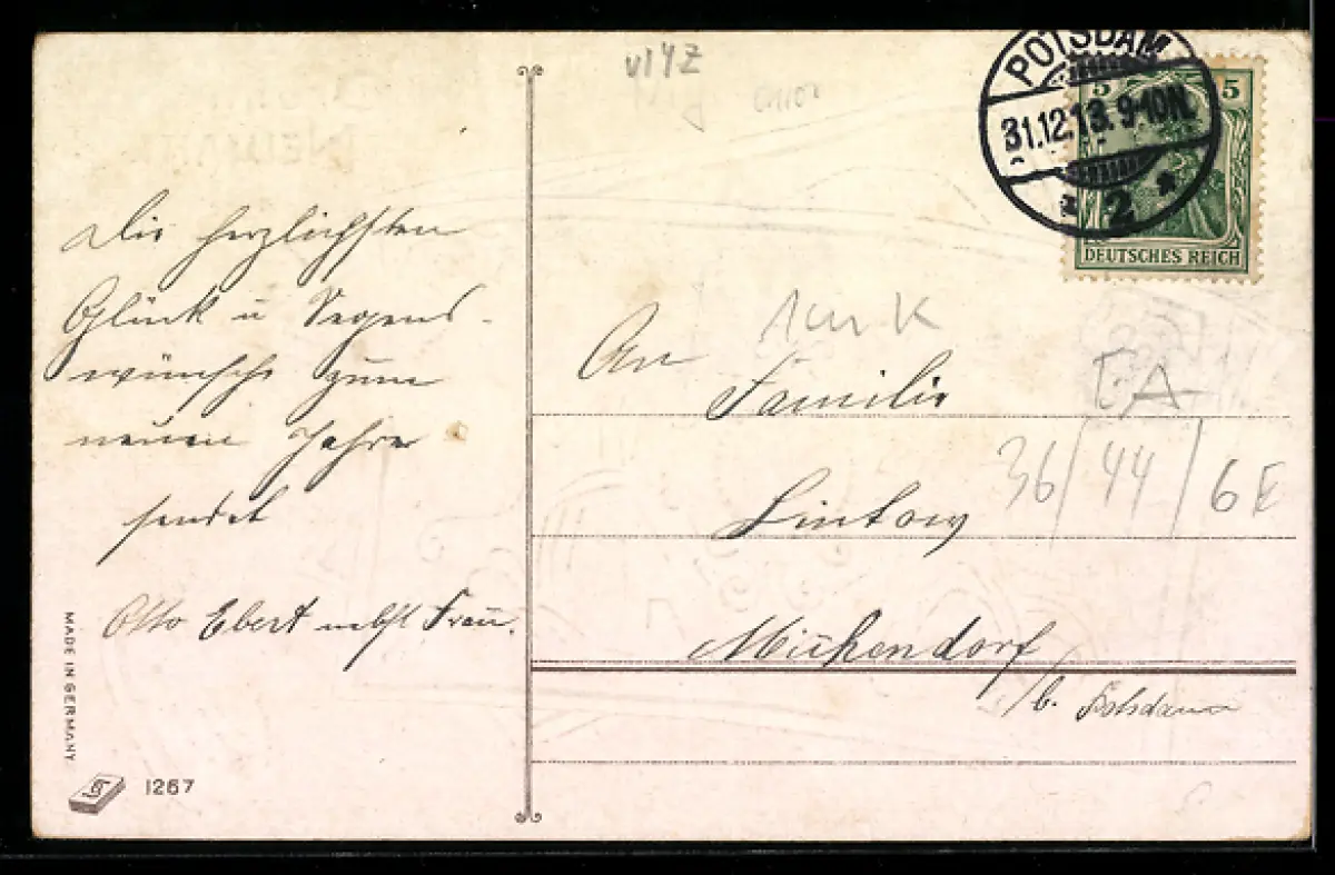 Ich bin sehr zufrieden mit dem Kauf. Es handelt sich hier nicht um ein Sammlerstück, sondern um ein Stück Familiengeschichte. Diese Karte wurde von meiner Urgroßmutter an meine Großeltern geschrieben. Ein zufälliger Netzfund. Vielen Dank!