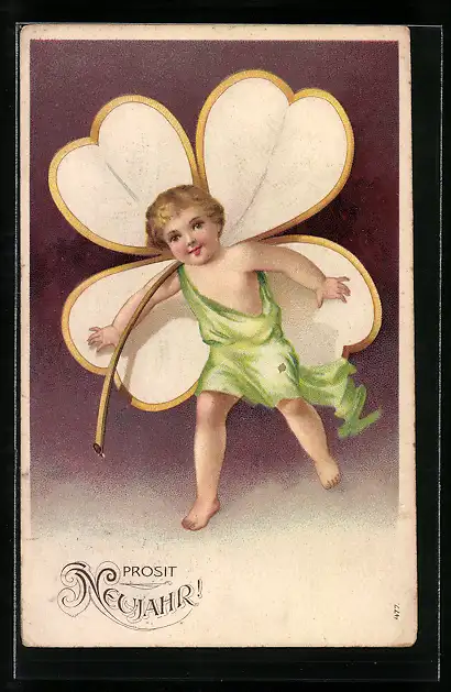 AK Neujahrsgruss, Kind mit riesigem Kleeblatt