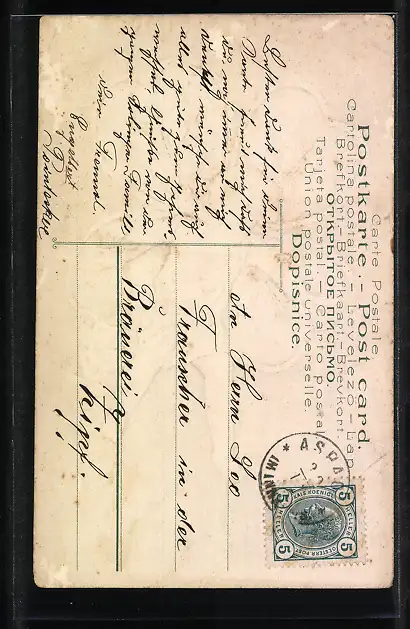 alte Ansichtskarte, gelaufen, rückseitig Oberflächenschaden, guter Zustand