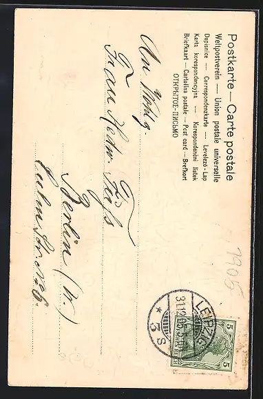alte Ansichtskarte, gelaufen 1905, guter Zustand