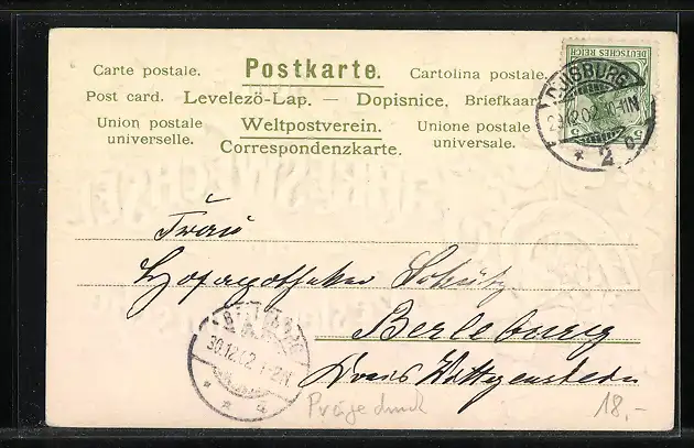 alte Ansichtskarte, gelaufen 1902, guter Zustand