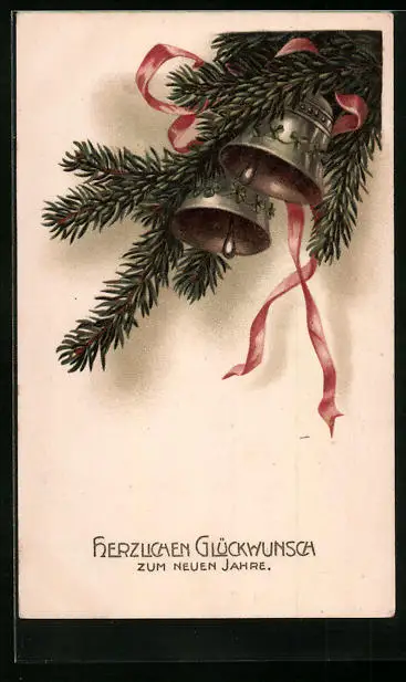 AK Neujahrsgruss mit Glocken am Tannenzweig