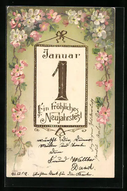AK Neujahrsgruss mit dem ersten Kalenderblatt