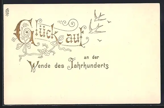 AK Neujahrsgruss zur Jahrhundertwende mit Schwalben