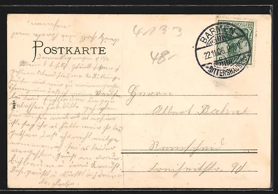 alte Ansichtskarte, gelaufen 1906, Stempelspur, guter Zustand
