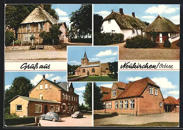 AK Neukirchen /Ostsee, Geschäft, Kirche, Ortspartie