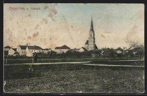 AK Neukirchen a. Enknach, Ortspanorama mit Kirche