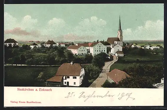 AK Neukirchen a. Enknach, Teilansicht mit Kirche