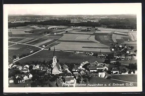 AK Neukirchen a. d. Enknach, Teilansicht mit Kirche, Fliegeraufnahme