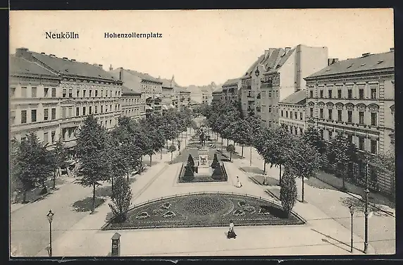 AK Neukölln, Hohenzollernplatz mit Denkmal