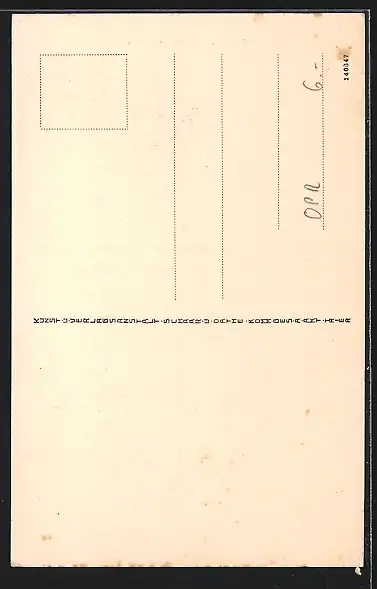 Personenbezogene Daten auf der Rückseite der Karte wurden durch blauen Textmarker unkenntlich gemacht. Die blauen Stellen sind auf die Vorderseite durchgeweicht und wirken sich negativ auf das Postkartenfoto aus