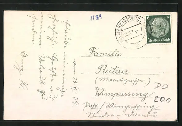 alte Ansichtskarte, gelaufen 1939, guter Zustand