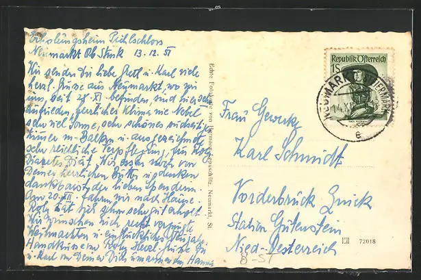 alte Ansichtskarte, gelaufen 1951, guter Zustand