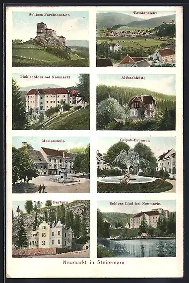 AK Neumarkt, Schloss Forchenstein, Totalansicht, Pichlschloss, Atlbachhütte, Mariensäule