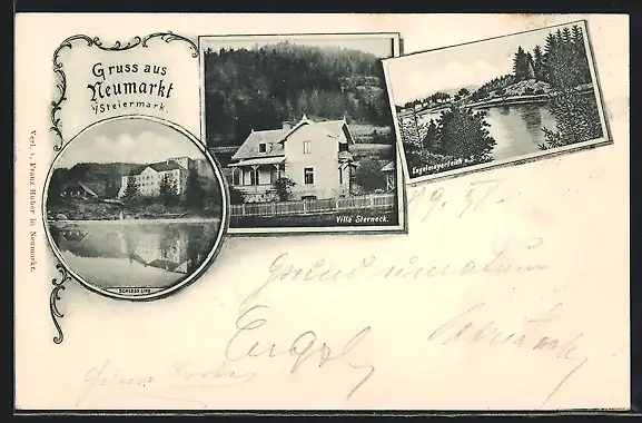 AK Neumarkt i. Steiermark, Villa Sterneck, Schloss Lind, Engelmayerteich
