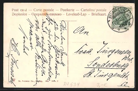 alte Ansichtskarte, gelaufen 1908, Eckknick li. oben, guter Zustand