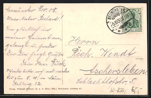 alte Ansichtskarte, gelaufen 1908, guter Zustand