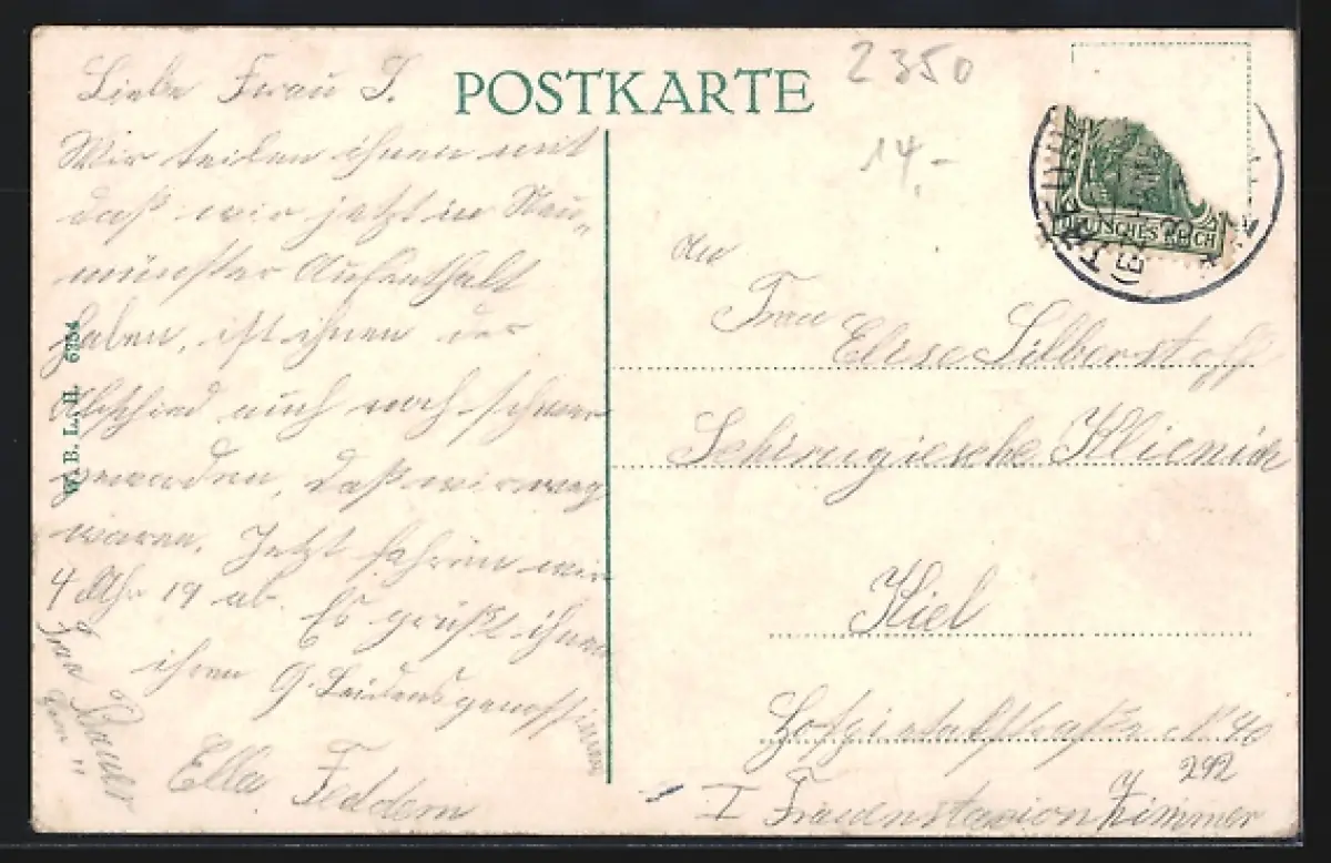 alte Ansichtskarte, gelaufen, Briefmarke entfernt, rückseitig Oberflächenschaden, guter Zustand