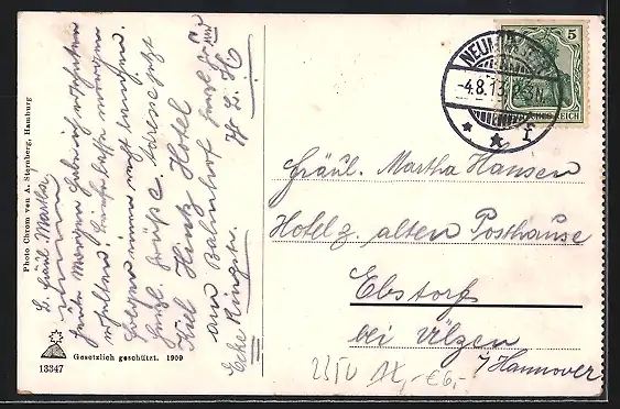 alte Ansichtskarte, gelaufen 1913, Stempelspur, guter Zustand