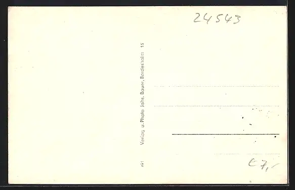 Personenbezogene Daten auf der Rückseite der Karte wurden durch blauen Textmarker unkenntlich gemacht. Die blauen Stellen sind auf die Vorderseite durchgeweicht und wirken sich negativ auf das Postkartenfoto aus