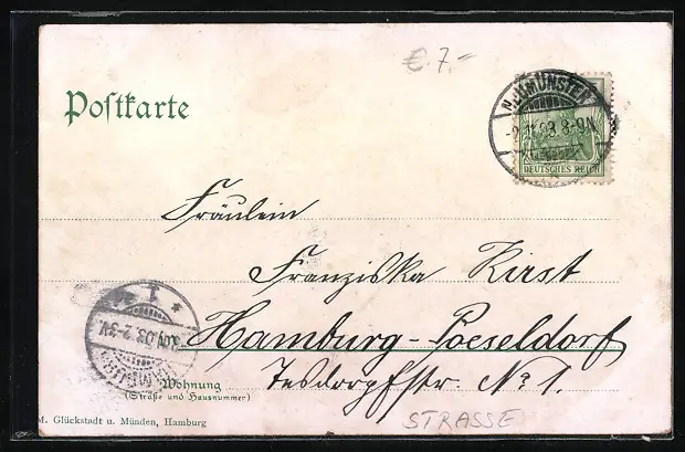 alte Ansichtskarte, gelaufen 1903, rechte Kante beschnitten, Eckknick re. unten, guter Zustand