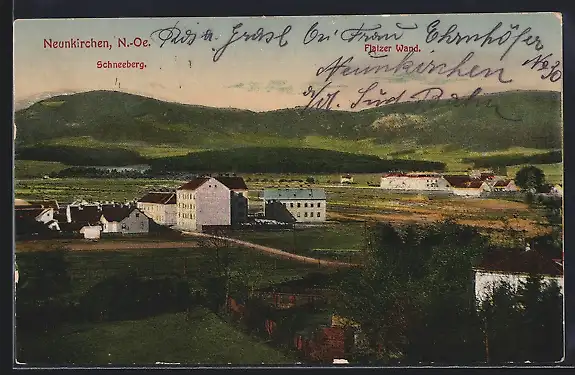 AK Neunkirchen /N.-Oe., Ortspartie mit Schneeberg und Flatzer Wand