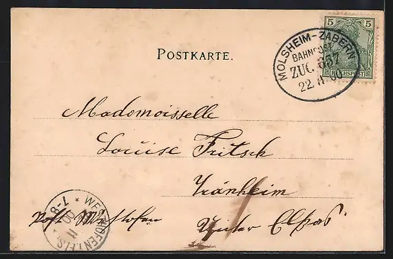 alte Ansichtskarte, gelaufen 1900, guter Zustand