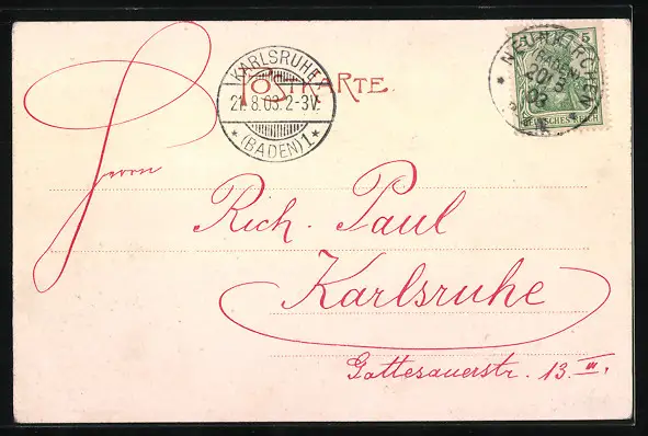 alte Ansichtskarte, gelaufen 1903, guter Zustand