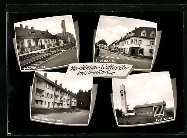 AK Neunkirchen-Wellesweiler, Bahnhofspartie, Hirschberg-Siedlung, Strassenpartie