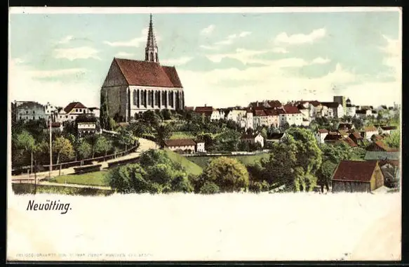 AK Neuötting, Teilansicht mit Kirche