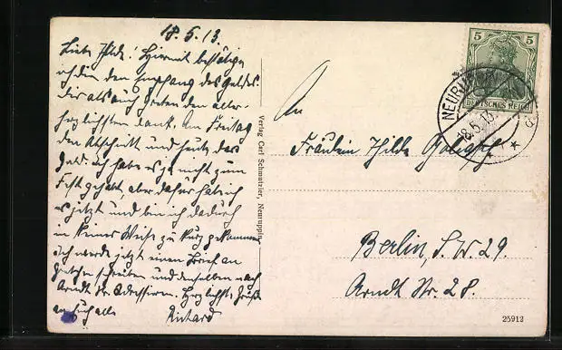 gelaufen 1913, Stempelspur, sonst guter Zustand
