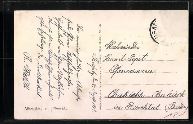 alte Ansichtskarte, gelaufen 1917, Briefmarke entfernt, rückseitig Oberflächenschaden, guter Zustand