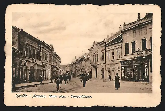 AK Neusatz, Ladengeschäfte in der Donau-Gasse