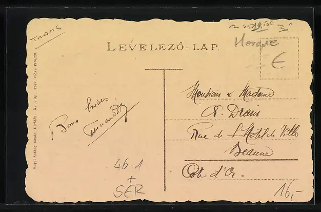 Personenbezogene Daten auf der Rückseite der Karte wurden durch blauen Textmarker unkenntlich gemacht. Die blauen Stellen sind auf die Vorderseite durchgeweicht und wirken sich negativ auf das Postkartenfoto aus